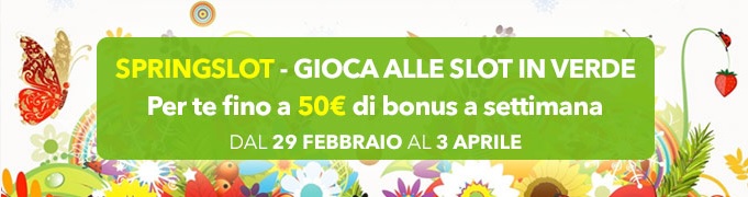 Celebra con Winga l’arrivo della primavera: il casinò online ogni settimana ti regala fino a 50€ di Bonus a settimana! Ogni settimana, dal lunedì alla domenica, se compri almeno 10€…